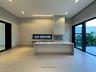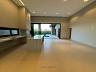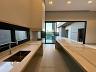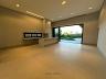 Espaço gourmet lounge amplo com vista para área da piscina,