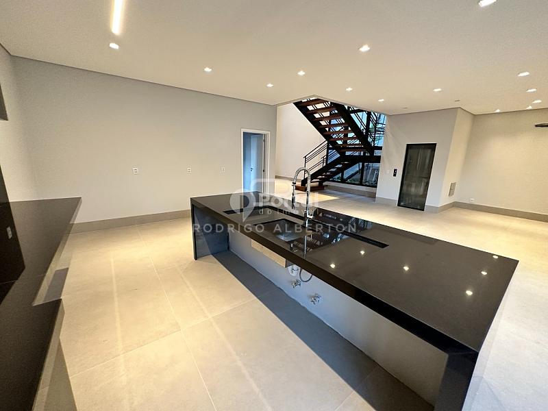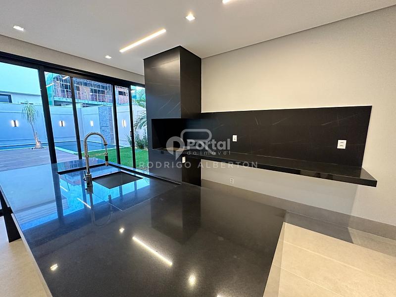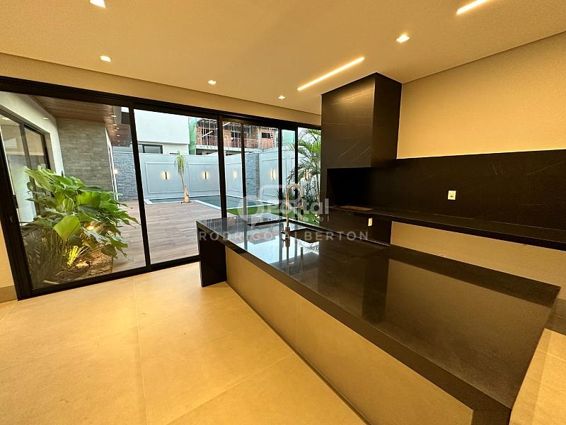 Cozinha com Ilha e Bancada integrada com churrasqueira,